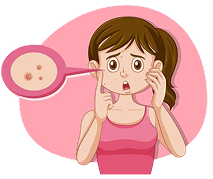 Acne is a skin condition characterised by pimples, blackheads, and whiteheads. It occurs when hair follicles become clogged with oil and dead skin cells, leading to the growth of bacteria and inflammation in the skin. Acne is, most commonly, seen on the face, neck, chest, and back and can range from a few occasional pimples to severe and widespread outbreaks. Acne is a common skin condition, especially during puberty, but it can affect people of all ages.
